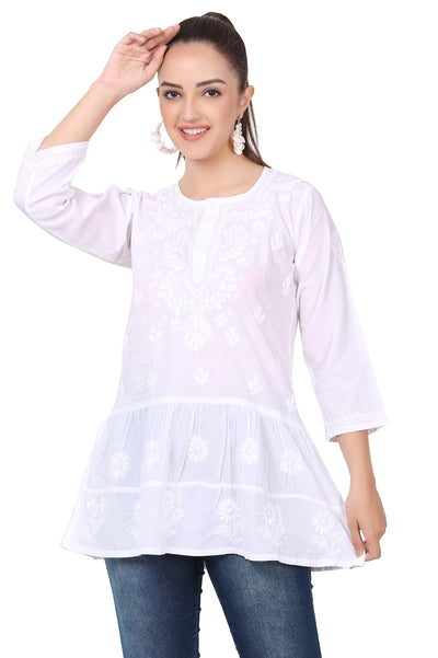 Sia White Chikankari Long Kurti with Multy Embroidery