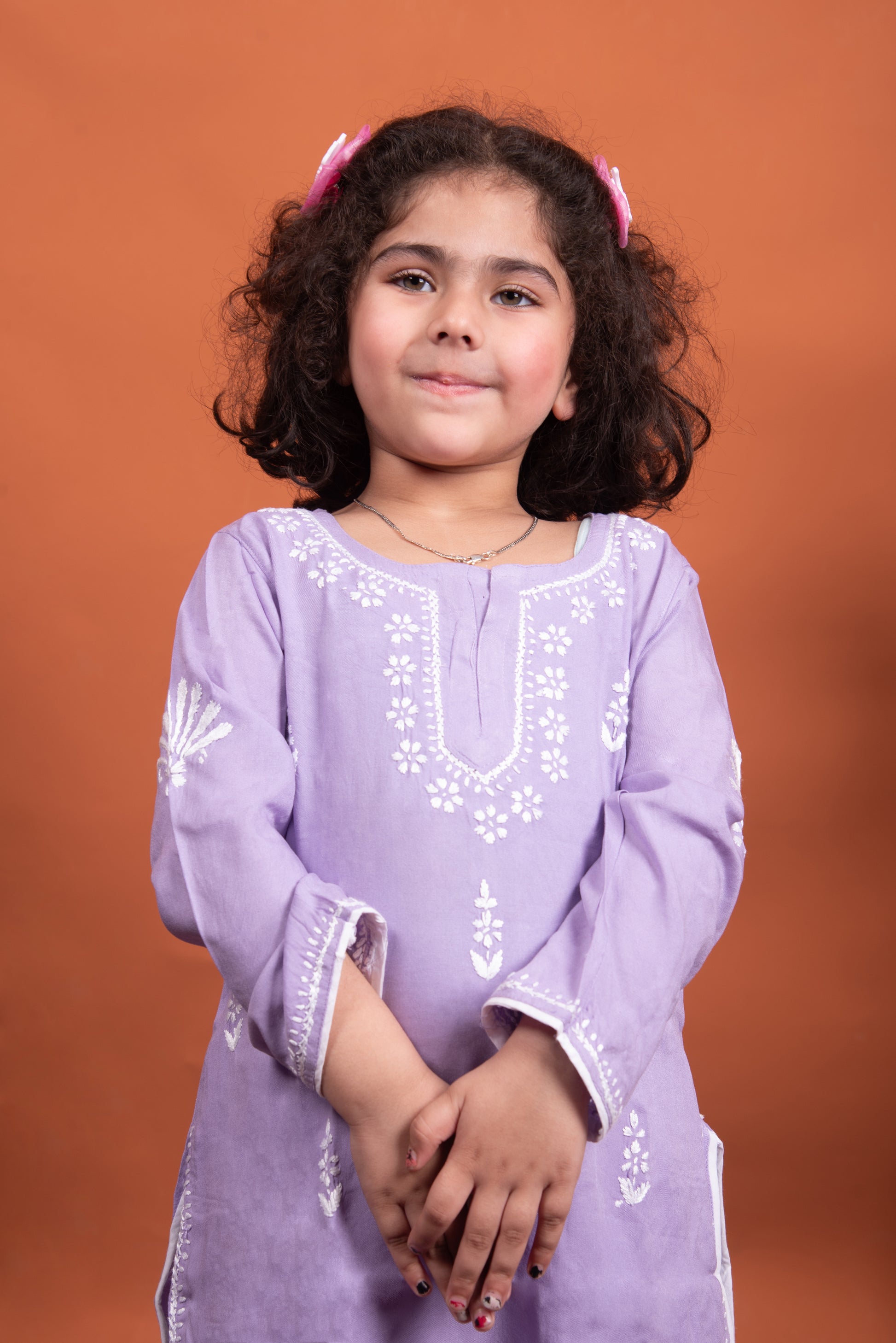 Lil' Princess Purple Chikankari Dhoti-Kurta Set